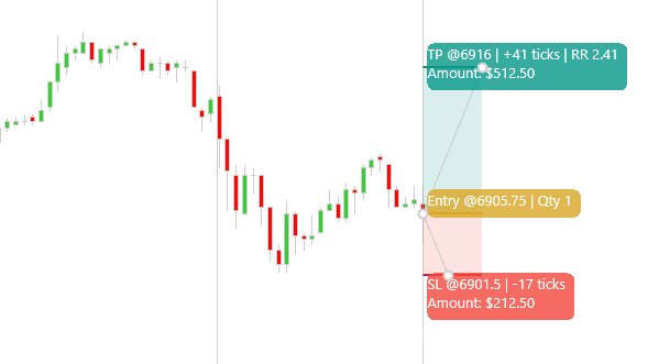 - 🧠 Context labels: TP/SL/Entry show ticks, RR, and cash only when relevant (on hover)
